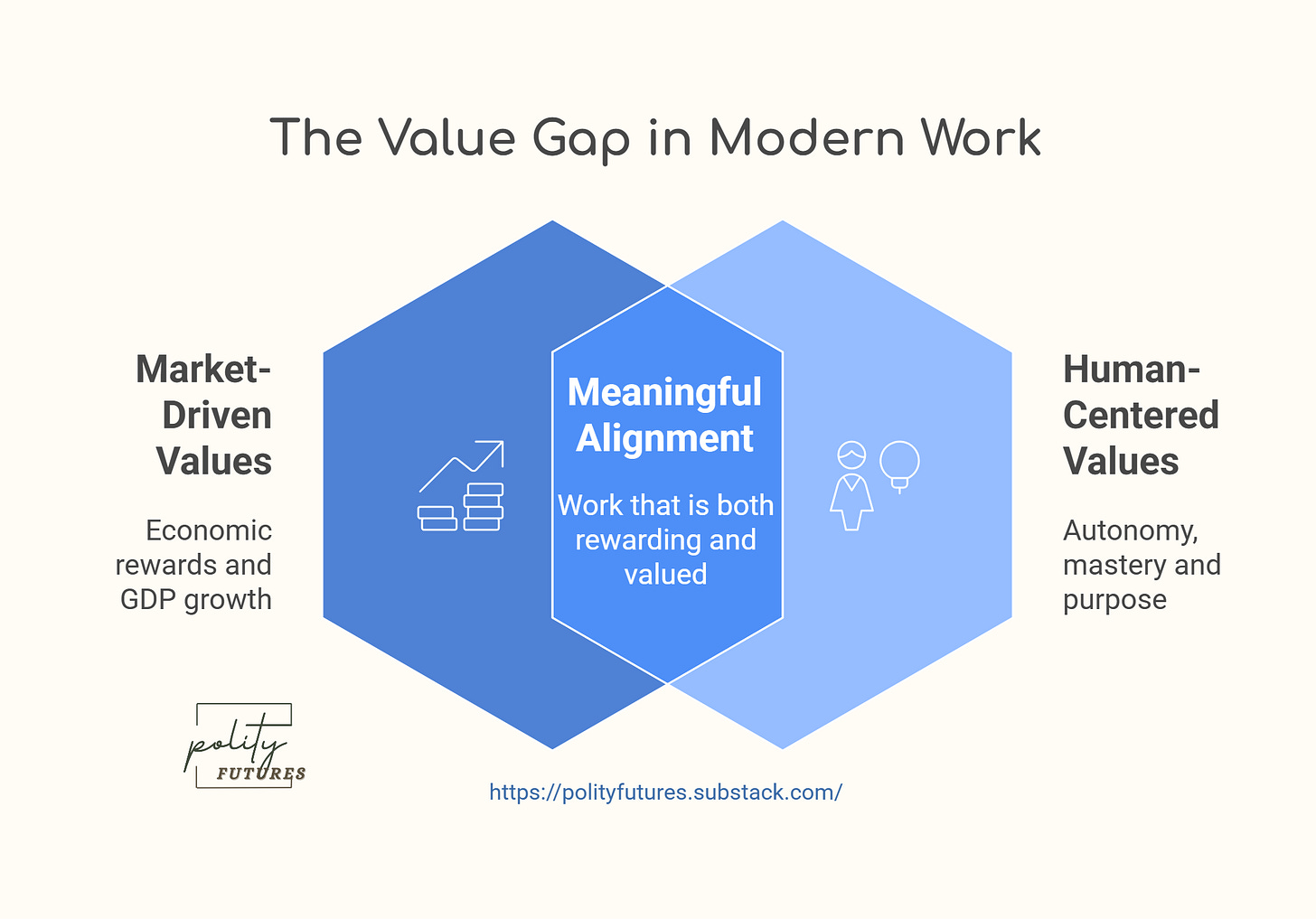 This points to a structural tension at the heart of today’s political economy: the market is a powerful coordinator of effort, but it is not designed to uphold the values people care most deeply about, particularly as workers, professionals and citizens.